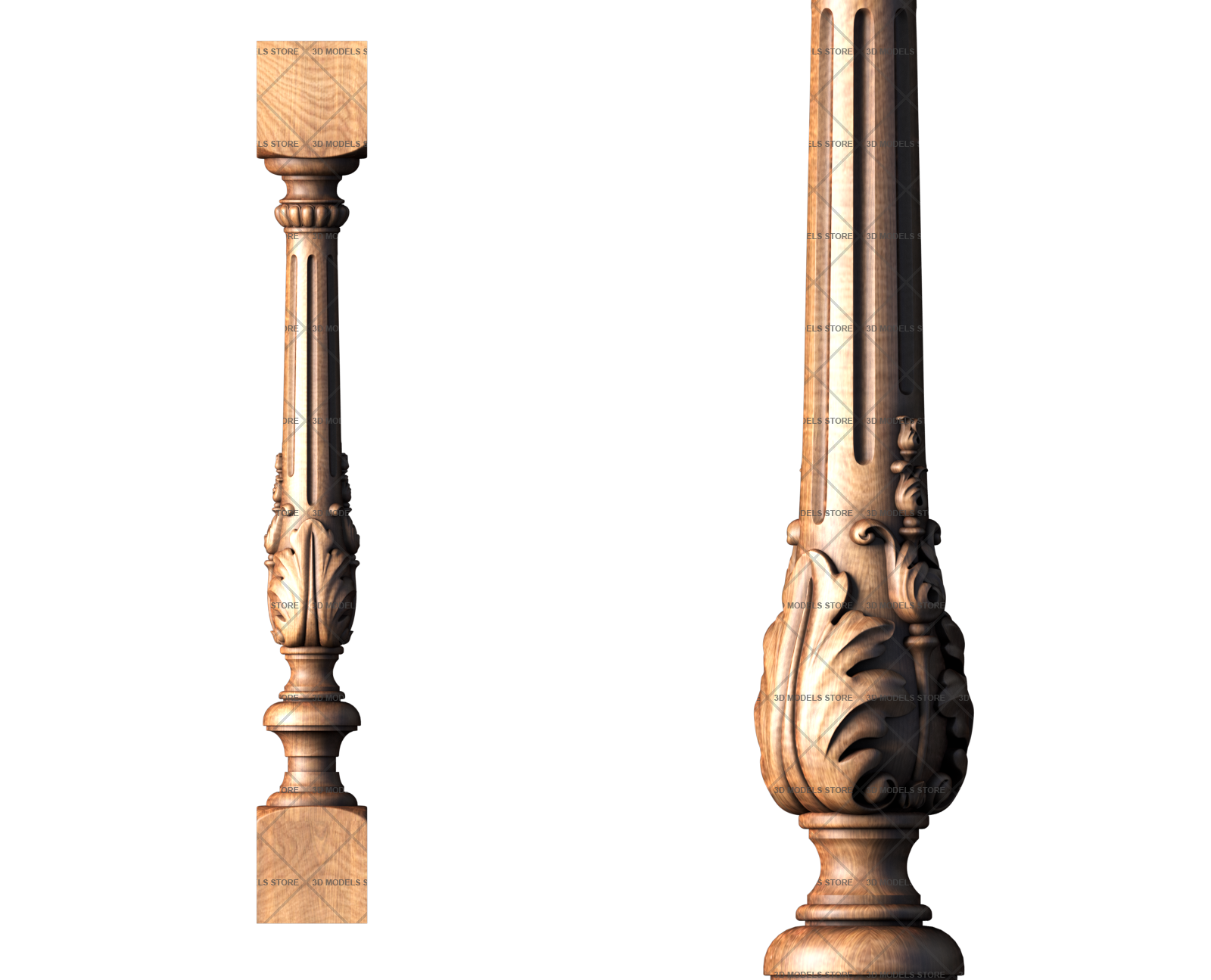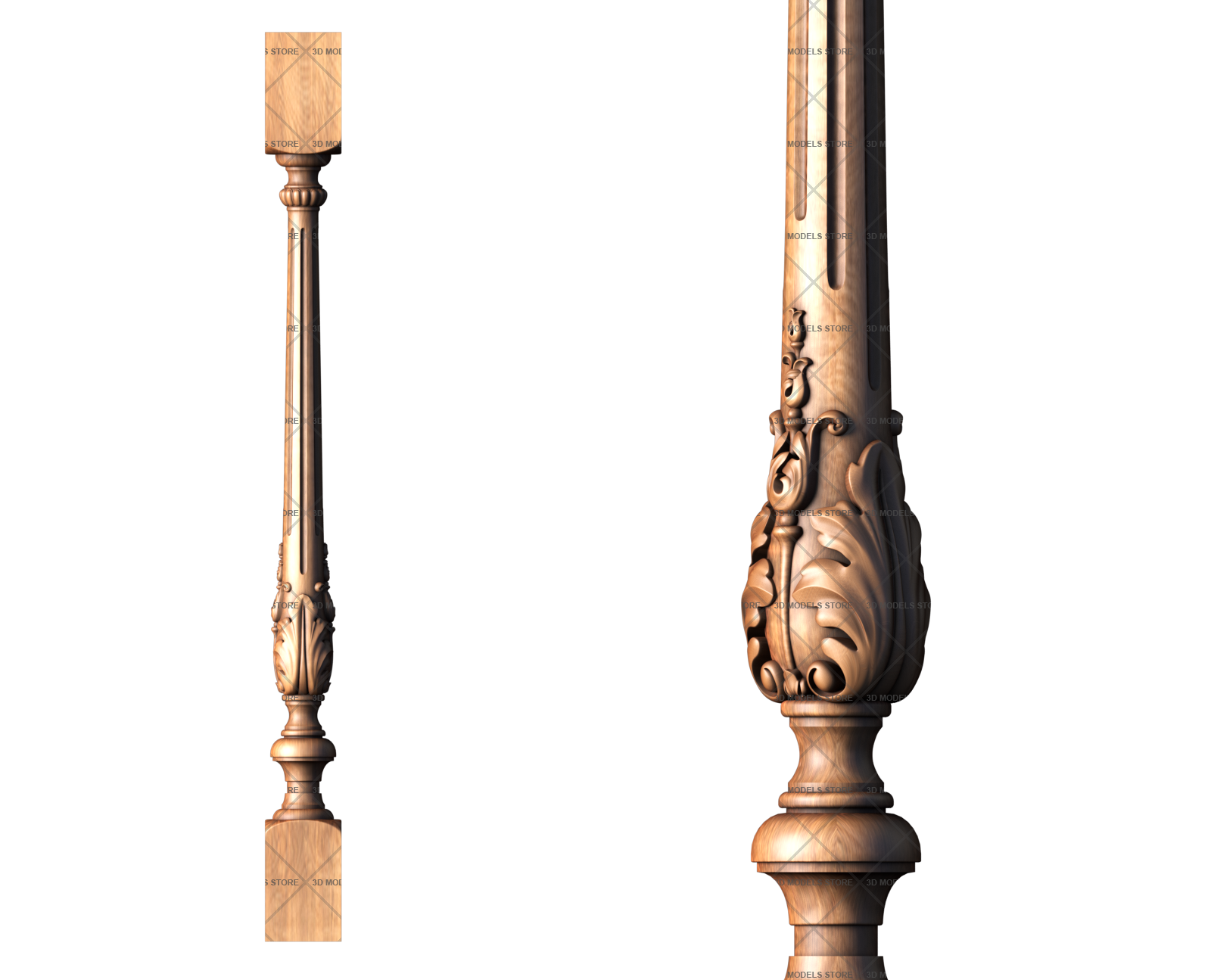 Balusters are an integral part of staircases and banisters. In classic and modern interiors balusters are still essential; they look good and serve safety purposes, making a rail fence on stair flights between the floors. Decorative balusters made of wood will brighten any room and highlight perfect taste of the owner. Balusters can be of any shape, the stretch of imagination is almost unlimited. In our online store you will find an excellent selection of 3D models of balusters and you will definitely be able to find a product that serves your needs. If you haven't found the desired 3D model, you may write to us and we will produce a model based on your design.