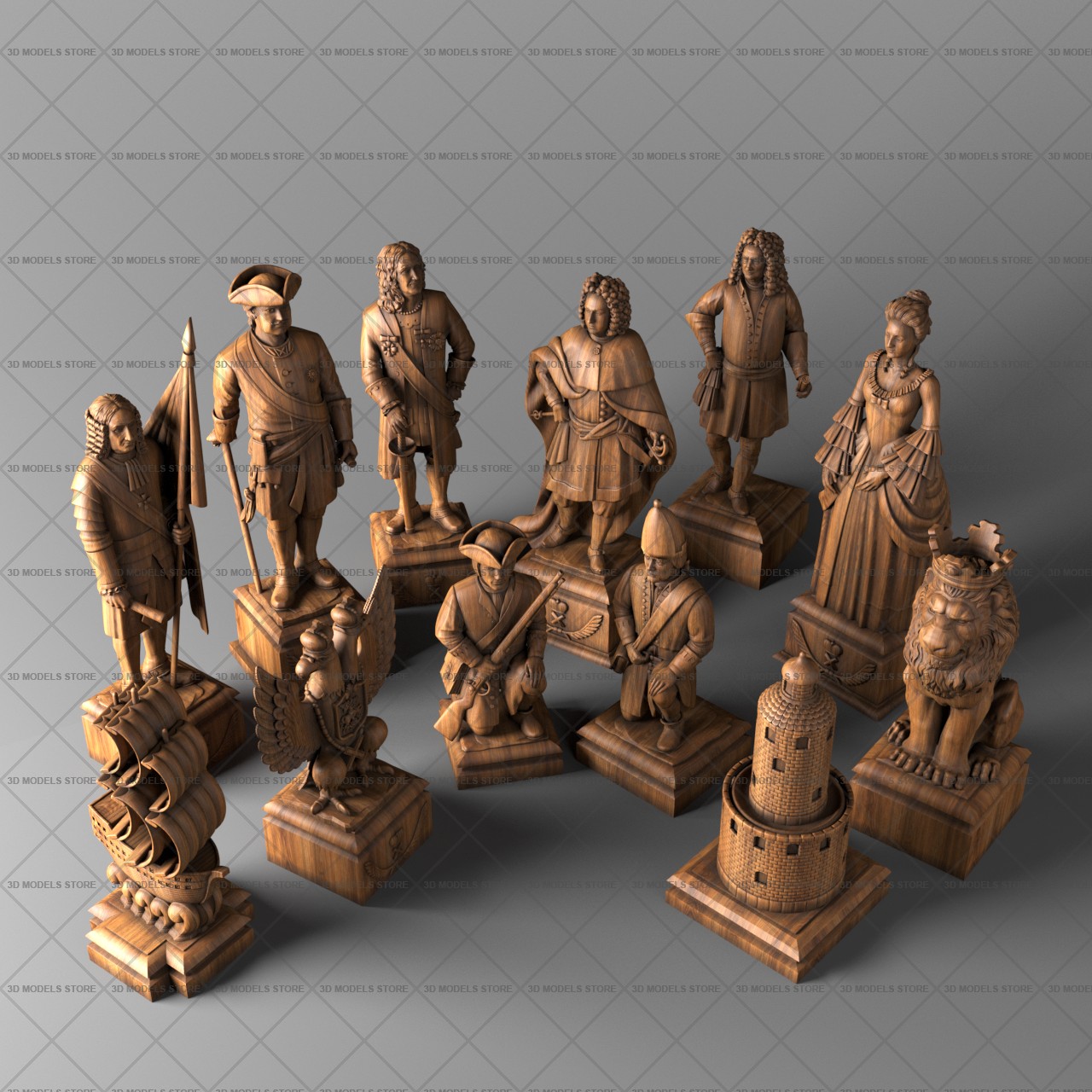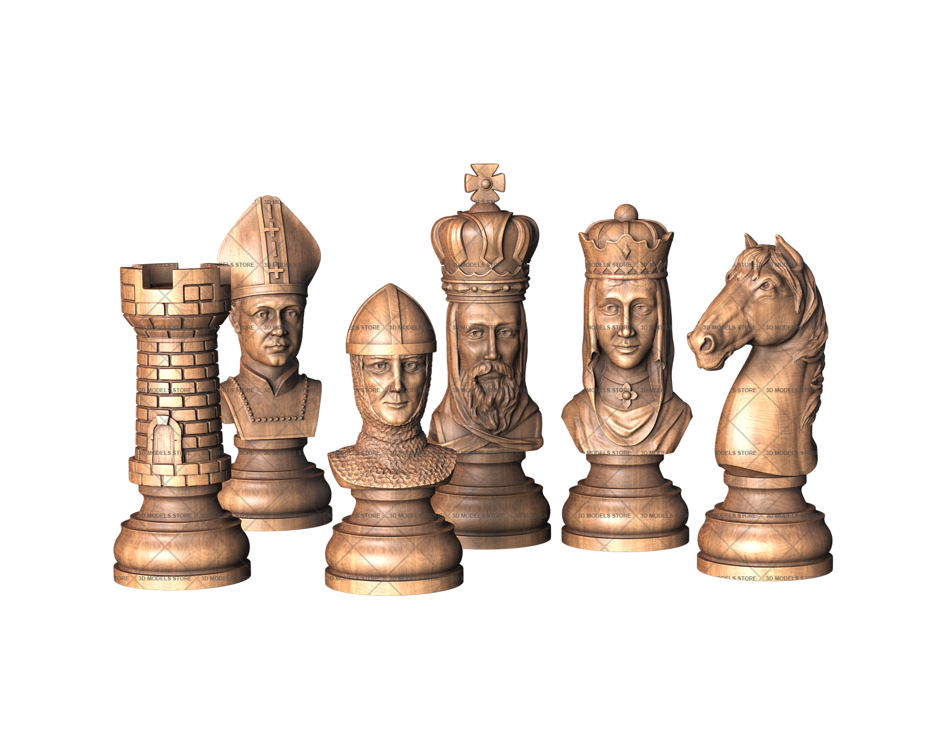 We offer you carved chess 3D (STL) models in different styles from classic to medieval knights, kings, warriors pieces. Each piece is designed in meticulous detail.